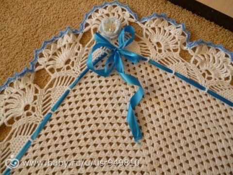 я б еще после голубого какой-нибудь оборочкой белой обвязала, а плюш уже до краев голубого и подшила))чтоб стыка ткани и вязки так очевидно не было видно!