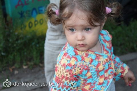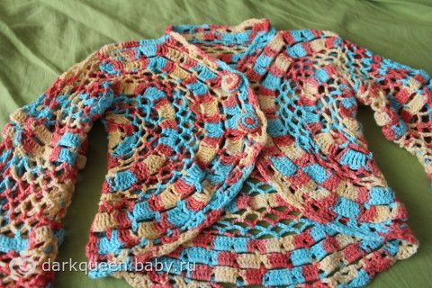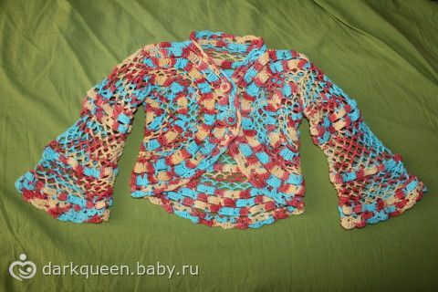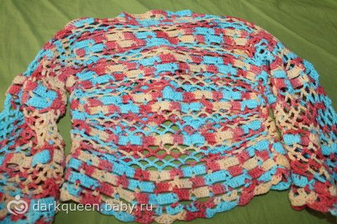 Учусь вязать болеро, так как ниточек было мало, вязала с остатков, да и жалко распускать было бы в случае неудачи, решила малюсенькое сделать(примерно на годик). Вот что получилось. как вам?