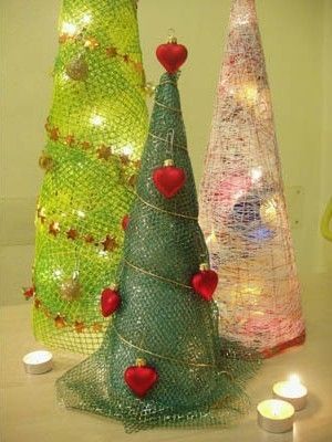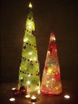 - Раз, два, три – ёлочка гори! Огни, проходя через нитяной каркас, будут давать причудливые отсветы на столе и стенах, создавая романтическую атмосферу праздника
