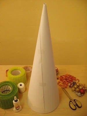 - Понадобится такой же конус, как и для способа №1. Если вы решили создать несколько таких ёлочек, то можно сделать их разного размера – так будет смотреться интереснее.