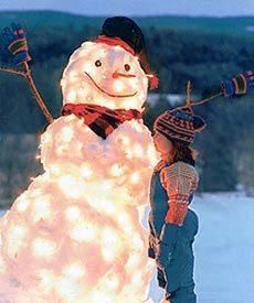 Создайте во дворе на даче волшебную атмосферу сказки и праздника. Для этого вам понадобятся обыкновенные елочные электрические гирлянды (желательно выбирать такую гирлянду, в которой лампочки будут защищены фонариком) и удлинитель, чтобы провести электричество на улицу. Начать можно с украшения снеговика: аккуратно оберните гирляндой снеговика, вдавливая проволоку в снег, а лампочки оставляя на поверхности. Попробуйте выложить из гирлянды фигуру или узор на снегу, украсить крыльцо или подоконники со стороны улицы или же проложите ее вдоль дорожки к дому (также скрывая проволоку в снегу и расчищая его вокруг лампочек). Предложите детям слепить у входа в дом снежные шары или любые другие фигуры, а затем оформите их лампочками. Такой светящийся «снежный» декор украсит новогоднюю вечеринку и сделает ее ярче.