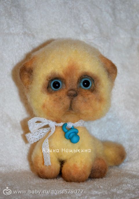 Кошечка Шанечка. Она довольно крупная, выполнена, как и все мои игрушки, в технике сухого валяния. Ошейник у неё из фетра, вышитый бисером. Глазки пластиковые, голубые. Свалена плотно, пушистая за счёт обработки обратной иглой. На неё ушёл целый моток шерсти.