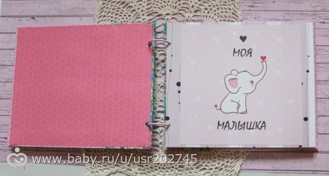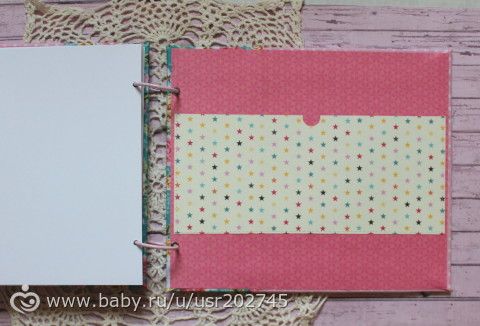 + карманы на обоих форзацах под бирочку или дополнительные фото малыша.