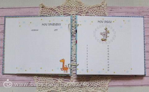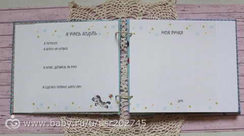 Это большие фотоальбомы с красивыми ЦВЕТНЫМИ карточками-страничками для записи достижений и данных малышей аж до 7 лет!!! Такой альбом-дневник получится, который вместит в себя около 120 фотографий! Формат 20*25 см. В состав входят 38 страничек: — титульная, — в ожидании, узи, — я родился, — все 12 мес, с 2-7 лет, — мой сад и моя школа, — мои достижения, прививки, таблички роста и веса 0-1 и 0-7, — крещение, — зубки — 2 варианта, — первые шаги и слова, — место для фото, для слепка ручки и ножки.