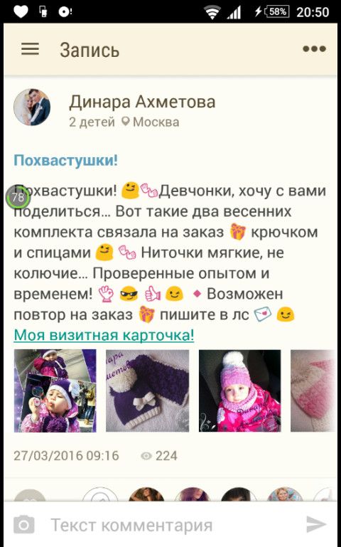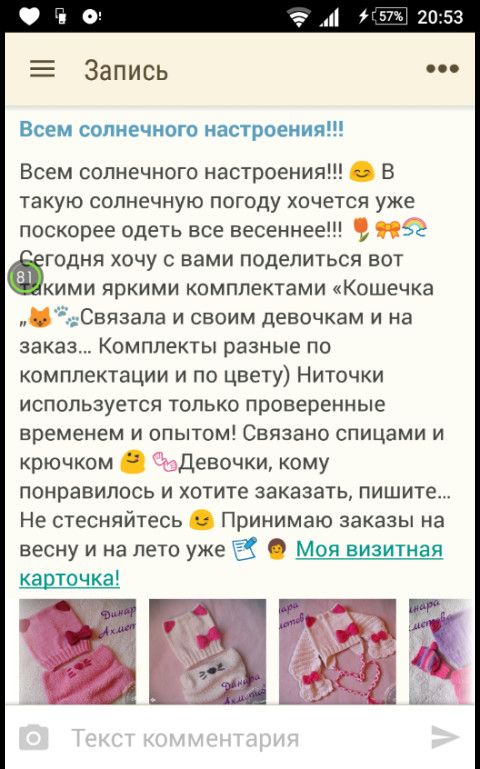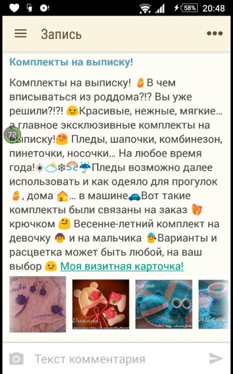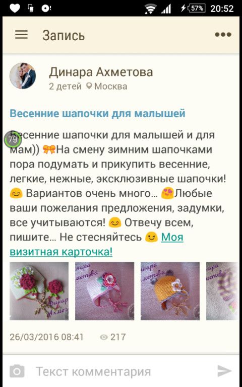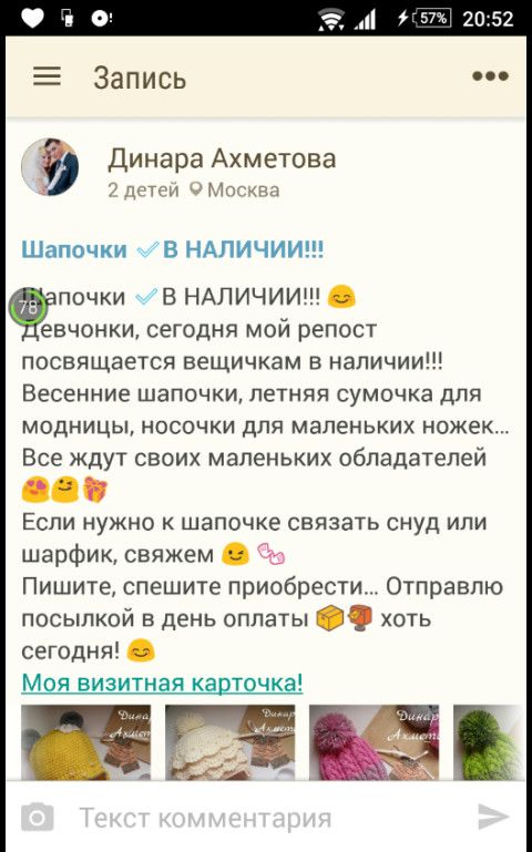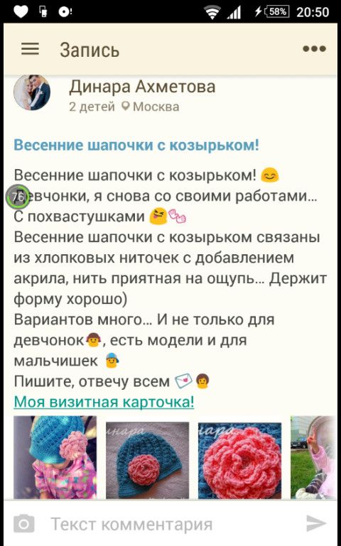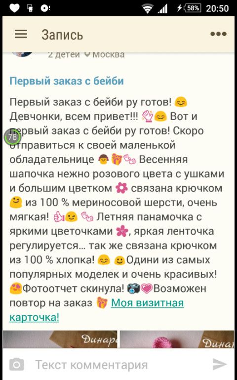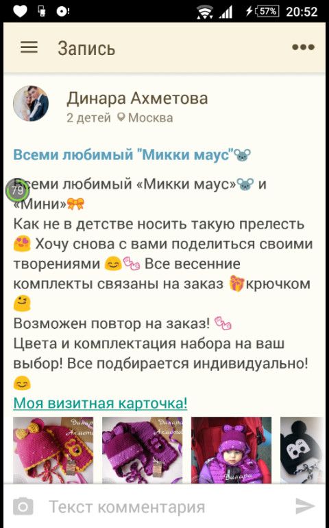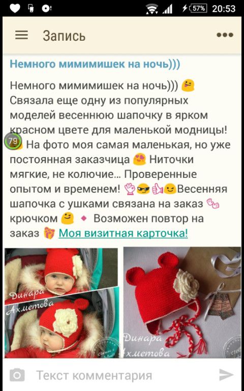 2. В следующих постах ставьте ссылку на этот первый пост-визитку, чтобы участницы сообщества могли получить информацию об авторе изделия