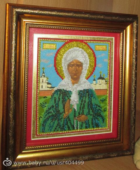 Я вышила Матрону, девушки в багетной мастерской мне предложили оформить икону с паспарту, заиграла другими красками моя икона