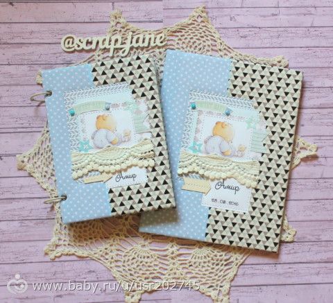 + карманы на обоих форзацах под бирочку или дополнительные фото малыша.