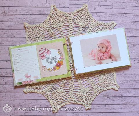 Фотоальбом формата А5 для 60 самых важный фото малышки.На заднем форзаце карман для хранения еще дополнительных фотографии .