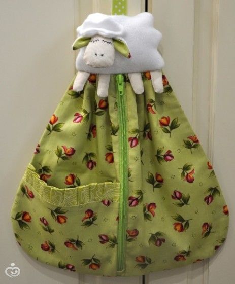 Пижамница — это такой мешочек, для хранения пижамки. Впервые такую необходимую вещь я сшила старшему сыную когда ему было годика 2 или 3. Просыпаясь утром, он снимал и пижаму и бросал ее где угодно, но только не в кровать. Причем штаны были в одном углу квартиры, а рубашка в другом. Поймать его, самой раздеть и аккуратно все сложить было не реально, очень веселый он у нас, до сих пор по потолку бегает ? Вот тогда и спасла нас пижамница. Все сразу встало на свои места, порядок вернулся в кроватку сына — так сильно он влюбился в овечку. И, кстати, он ко всем вещам стал относиться аккуратнее. Теперь такие пижамницы я шью на заказ и не только с овечками, для мальчиков еще и с машинками и самолетиками — их я вам покажу завтра ?Еще вспомнила, были у меня две заказчицы, у которых детки не хотели спать в пижаме, а получив в подарок пижамницу, согласились. ?Мои пижамницы вешаются на кроватку с помощью завязок или за петельку вешаются на гвоздик. Снаружи есть 1 или 2 кармашка, особенно это нравится девочкамю они туда складывают свои сокровища, а мамы кладут на ночь соску, чтобы не терялась. Все пижамницы на фото в наличии. Ссылка на мою визитку