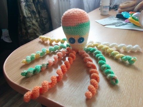 Связала дочке игрушку, теперь она лежит с ней.Первый подарок от мамы… Поправляться, моя маленькая…