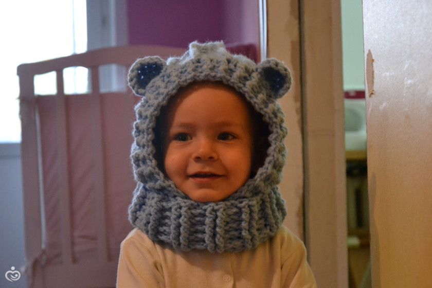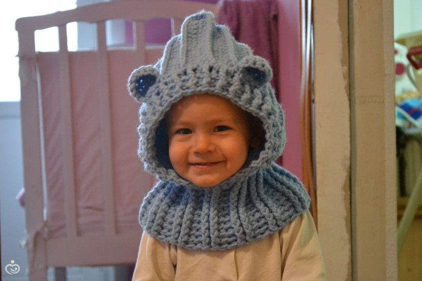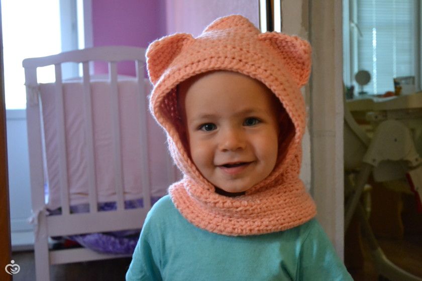 на ютубе пользователь Мамочкин канал) видео Шапка Снуд с ушками Вязание крючком для детей Crochet Hooded Bear Cowl ) только я немного изменила сам снуд)