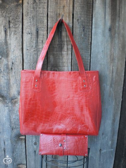 Привет всем! Покажу новый комплект, который я сшила на днях.Состоит он из сумки-шоппера и кошелька.Кожа натуральная, итальянская, имеет тиснение под крокодила. Цвет алый.Сумка размером 35*30*9 см.
