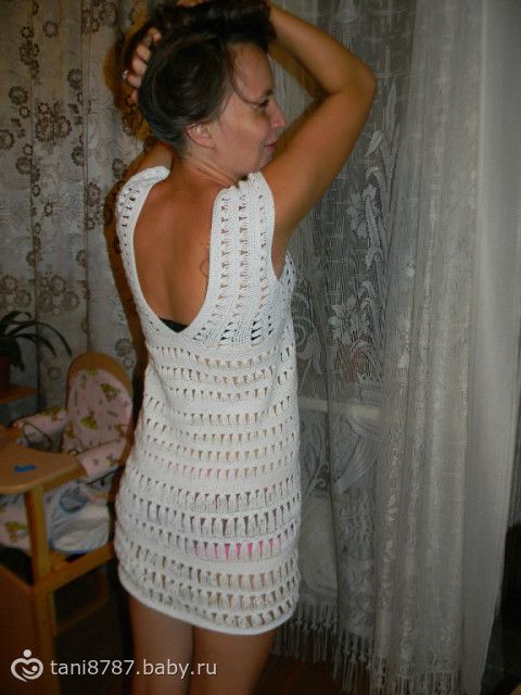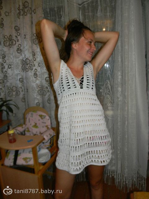 Добрый день) Вчера закончила сарафанчик к лету из хлопковых ниток. Я решила, что они немного подрастянутся после стирки… но ошиблась. Поэтому сарафанчик получился внатяг сверху (у нас животик ни как не уйдет)… но думаю, все-так мы его летом поносим.