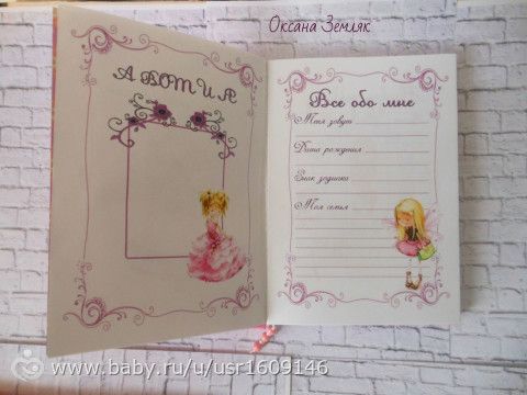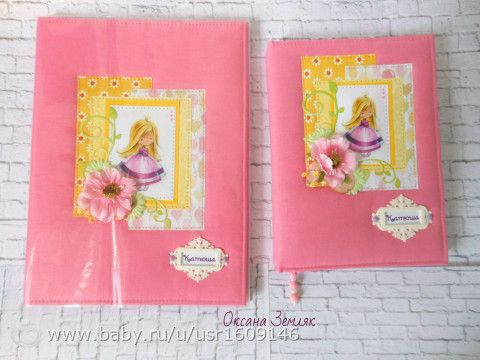 Недавно сделала набор для девочки. Это был беби бук и папочка (А4) для документов.