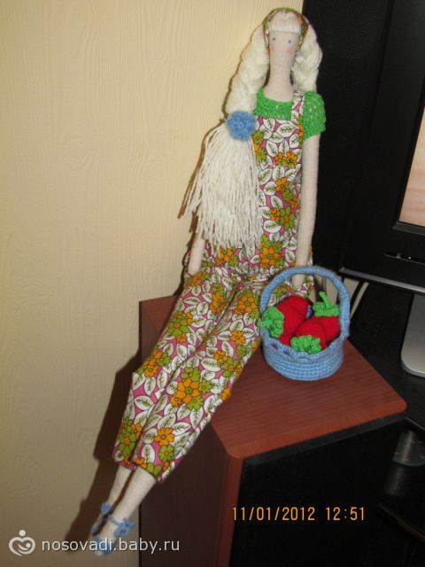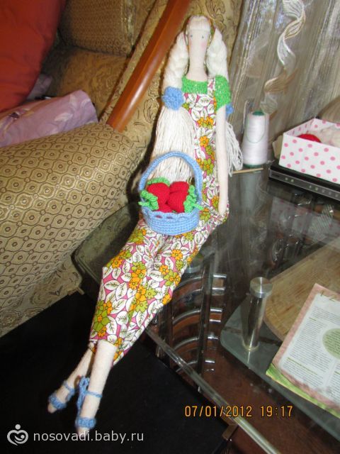 Тильдочка с клубничкой в подарок для подруги :) Уедет в Германию :)
