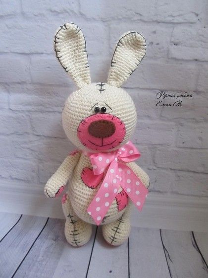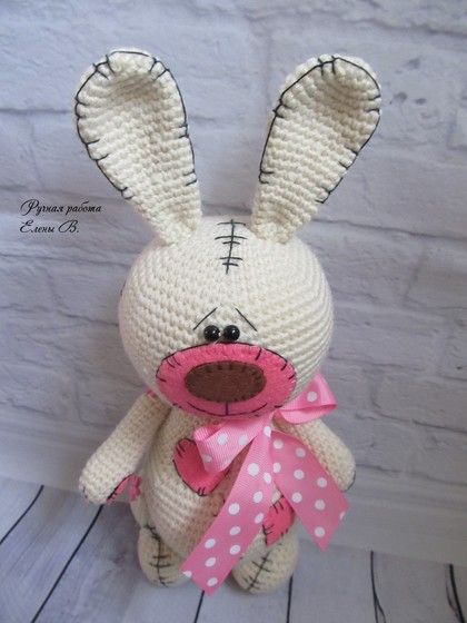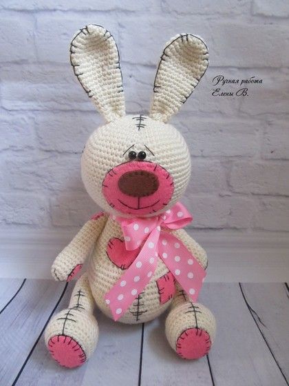 Вот такой милый зайка у меня есть в наличии, кто захочет приобрести пишите). Рост с ушками 30 см, без 24 см.