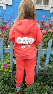 Первый шился коралловый костюм Настюше. Выкройки верх оттобре 2014-1-16 размер взяла 110. На см сузила в ширине. Низ 2013-4-27 размер 110. Длину чуть добавила на вырост. Ткань футер 2х нитка с лайкрой и с добавлением полиэстера. Брала у Надин. Вроде пока не жалуюсь))). Термотрансфер олимпийский чебурашка. Боялась не будет держаться, зря боялась все отлично держится. Ткани ушло 1,7 получился один верх и два трико.