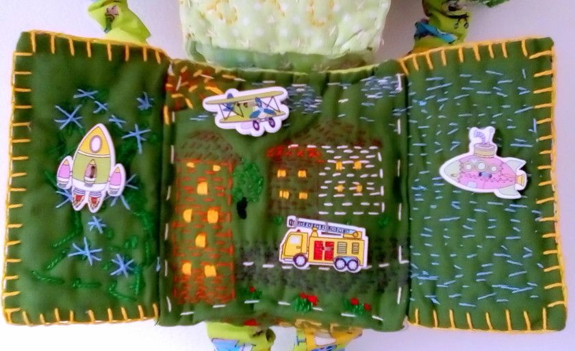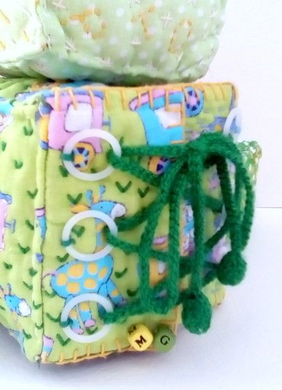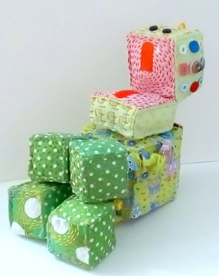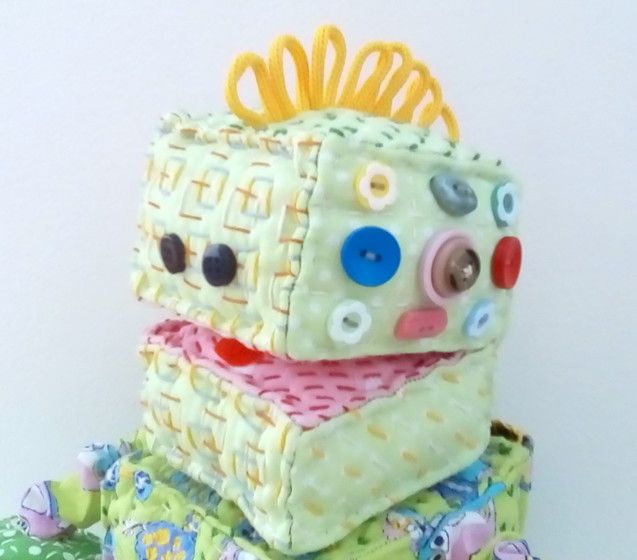 Роботы все больше и больше завоевывают любовь детских сердец. Я тоже не равнодушна к этим созданиям человека! Новый Робот Тоб в неожиданном исполнении порадует любого ребенка! Эта развивающая игрушка создана из хлопка и наполнена синтепоном. Этот робот состоит из 6 кубов, стороны которых в ручную расшиты хлопковыми нитками. Специально для маленьких пальчиков очень надежно пришиты на животике деревянные кубики с цифрами и различные пуговицы на голове Робота.Ручки и ножки на резиночках, поэтому за них можно смело тянуть, а если потянуть, например, за левую ручку, то она станет длиннее, а правая короче, и наоборот. На спине у Тоба есть шнуровка. Сняв ее, ребенок откроет две створки и перед его глазами появятся картинки с изображением различных видов транспорта — пожарная машина, самолет, ракета, подводная лодка. Кроме того, у Робота Тоба открывается рот (он на липучке), так он выражает свою радость. На макушке есть чудные завитушки солнечного цвета!