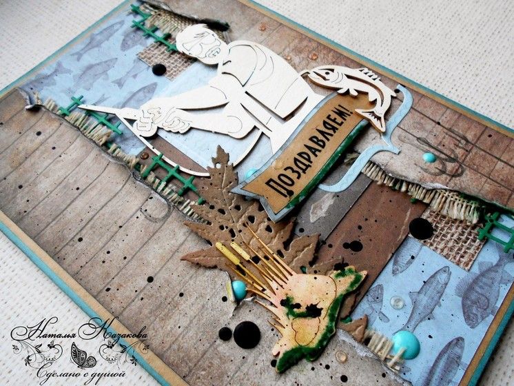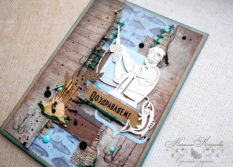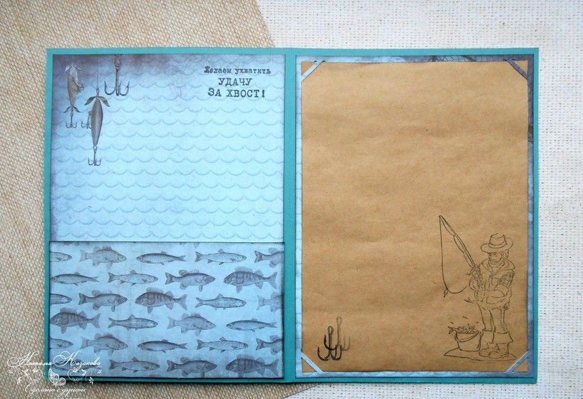 Первая — мужская! На день рождения для молодого мужчины, увлеченного рыбалкой. Формат А5! С кармашком под денежный подарок.