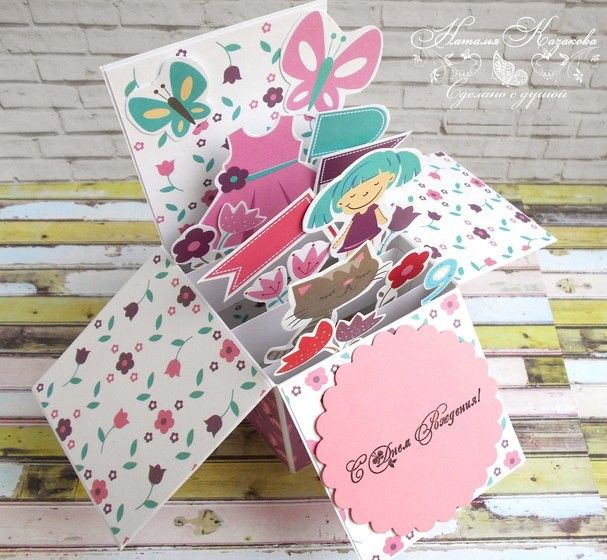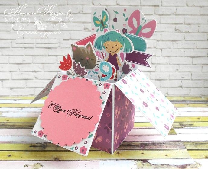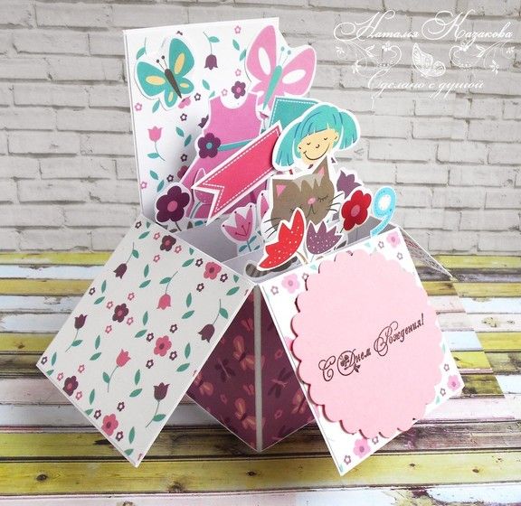 господи коробочка супер! я б сама рада была такой открытке на др! Я вот прям уже хочу! Может можно я у вас закажу для племяшки?)