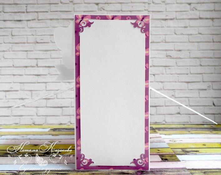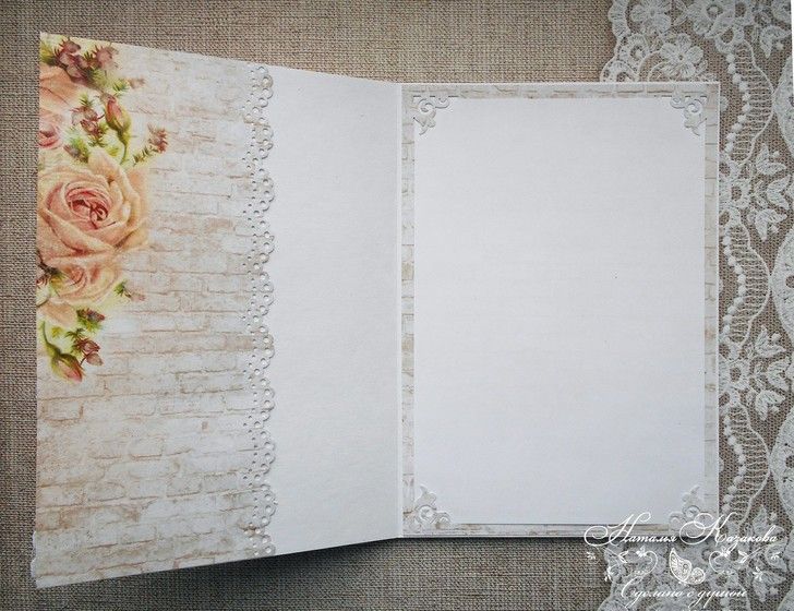 Открытка легко прячется в конвертик, раскладывается и устойчиво стоит на столе.