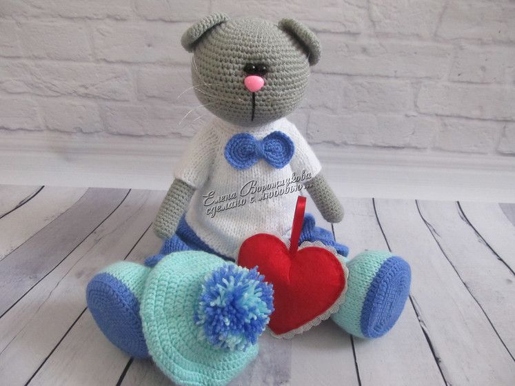 Всем доброго дня и хорошего настроения!!!???Скоро день святого Валентина и у меня появился влюбленный кот Семен) Вот такой вот джентльмен, ростом 35 см!