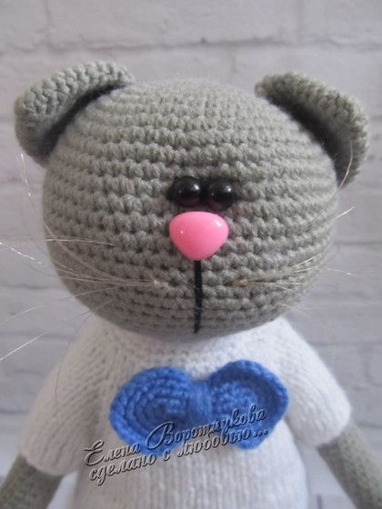 Классный котик! Я недавно саязала свою первую игрушку, тоже котика, кошечку. Без ошибок только платье получилось))), но дочка все равно его любит)