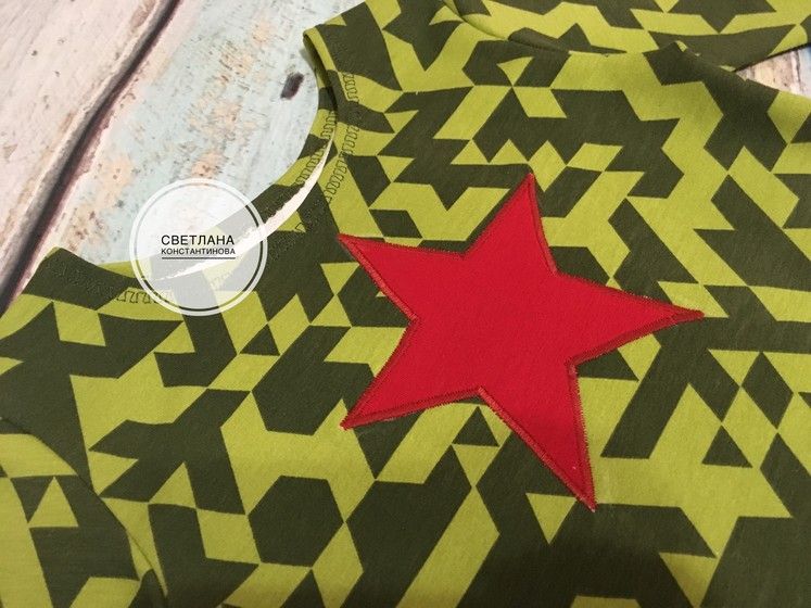 В платьице целое ассорти: и аппликация в виде звезды и рукав 3/4? и даже рюша с роликовым швом ?