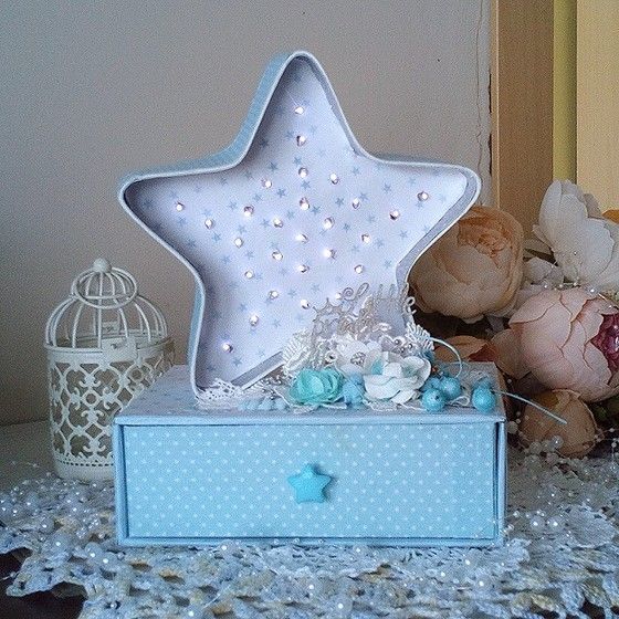 ?Так же, чтобы эта коробочка просто такне стояла на полочке и не пылилась, ее можно использовать как ночник для малыша очень долгое время и ваш кроха не будет бояться темноты!