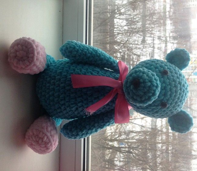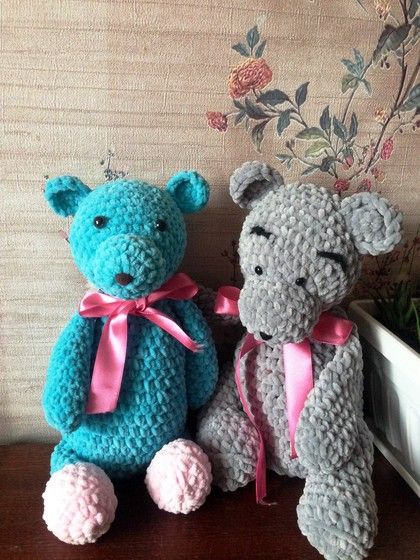 Девочки хочу поделиться с Вами моим хобби — вязание крючком. Хочу сказать, что вдохновение ко мне пришло после выхода из декрета. Многие интересуются, откуда беру время? Сама незнаю… но могу сказать одно, что меня это расслабляет, успокаивает… я полностью погружена в то что я вяжу, будь то подушка, корзинка или игрушка — я всегда смотрю как будет лучше или что добавить или убрать, могу просидеть пол ночи собирая все детали игрушки, и как не смешно со стороны, но даже разговаривая с игрушкой, как будет лучше, куда пришить ушки, ножки и т.д… Муж на меня ругается, что все в моем вязании, поэтому решила попробовать вязать на продажу… Мишка в бирюзовом цвете, в наличии — 500р, могу повторить в другом цвете тоже 500р, серый цвет -700р. Вяжу из детской пряжи, наполнитель — синтепух, трикотажная пряжа — 100% хлопок. люблю экспериментировать и вязать что то новое. Если у вас есть какае-то задумка можно ее воплотить, например сделать на животике — МЕТРИКУ. это будет замечательный подарок, самое главное, что они мягкие и приятные на ощупь.