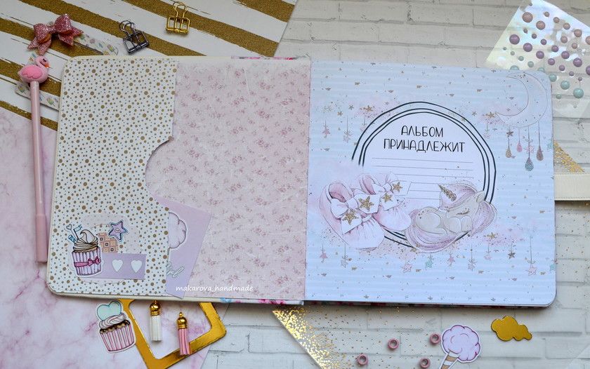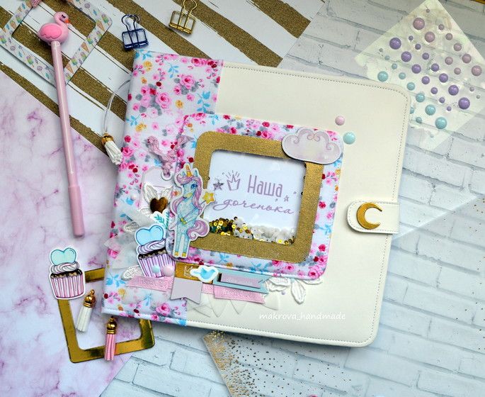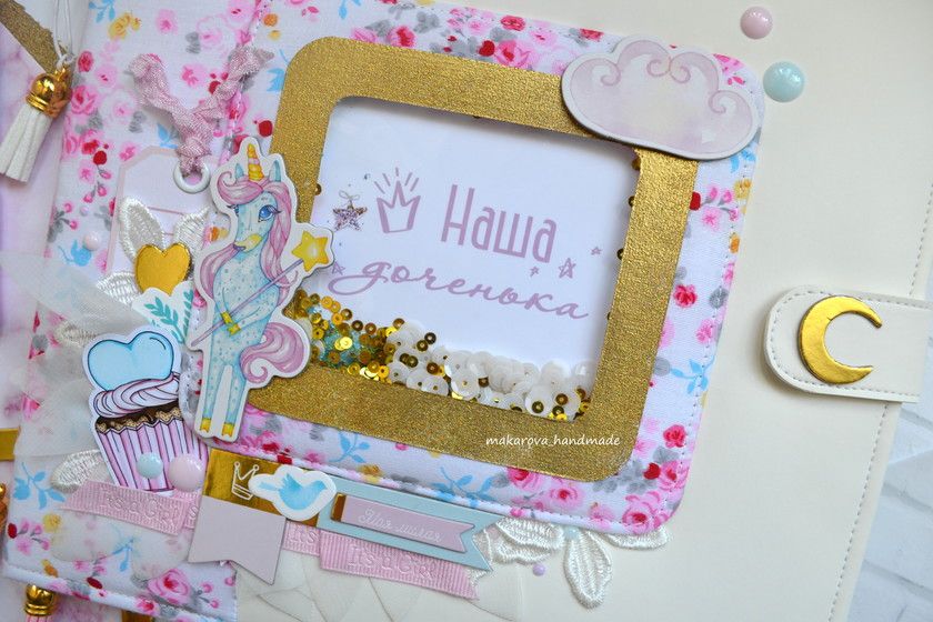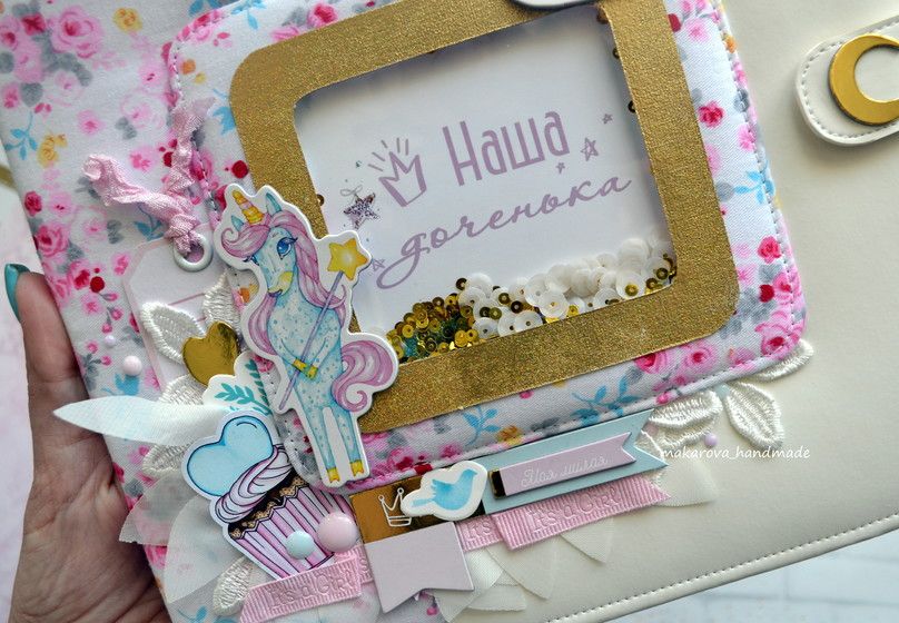 Украшают альбом дотсы, кружево, шифоновые лепестки, ленты и другие декоративные элементы, а какая красивая единорожка во главе — вы заметили?! Я прям без ума от нее!?
