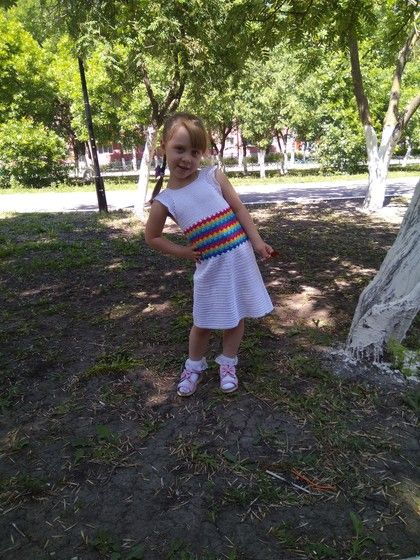 Захватили меня платья и сарафаны, все таки вязать мне такие вещи нравится больше, чем шапочки и кофточки.