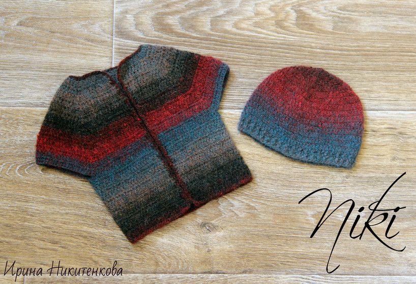 19) Шапочки и жилетка для недоношенных деток «28 петель»