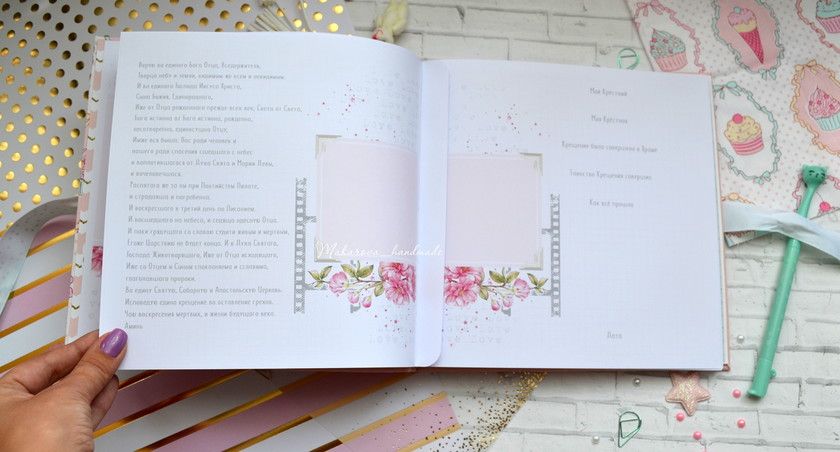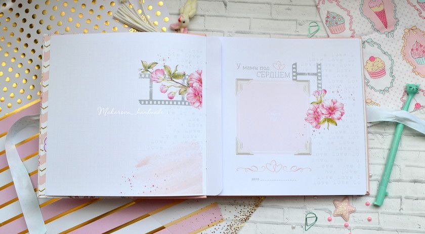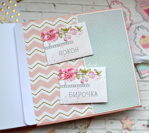 Также альбом имеет два конверта для хранения бирочки из роддома и первого локона новорожденного!?