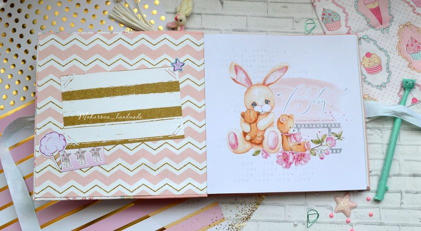 Такой альбом станет прекрасным подарком для молодой мамочки на рождение малышки, выписку из роддома или крещение! Странички для внутреннего содержания и оформление альбома можно выбрать)))