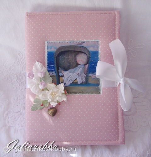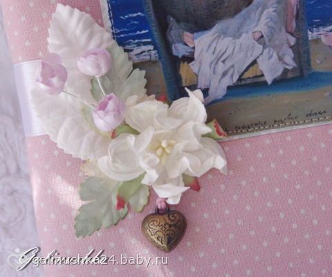 Моей заказчице очень хотелось, чтобы я сделала для нее этакий блокнот мечтаний)))) Именно эта картинка Гапчинской выбрана не случайно, т.к. подпись в ней точно соответствует этому блокноту: «Я знаю где рождаются розовые облака....»