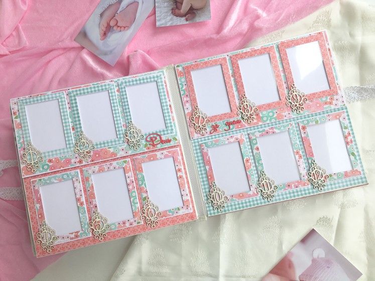 Размер альбома 25*25 см. Внутри 12 декорированных страниц о первом годике малышки.