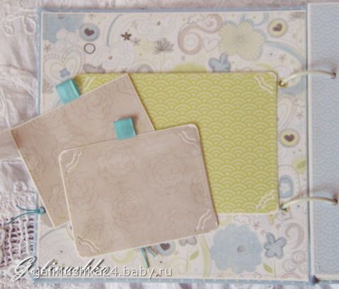 — Восьмая страничка — на ней большой карман для дополнительных фото, записочек или диска))) В кармане прячется маленькая книжечка для записи важных моментов)))