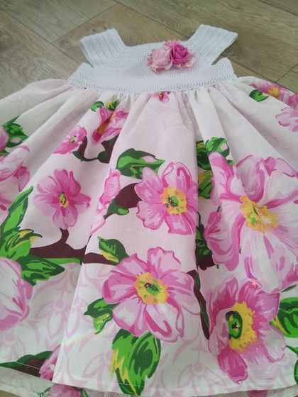 Кокетка связана нитками «Ассоль» от Назар в две нити, крючок #2. Расход 2 неполных моточка на 3 года. И немного бязи.