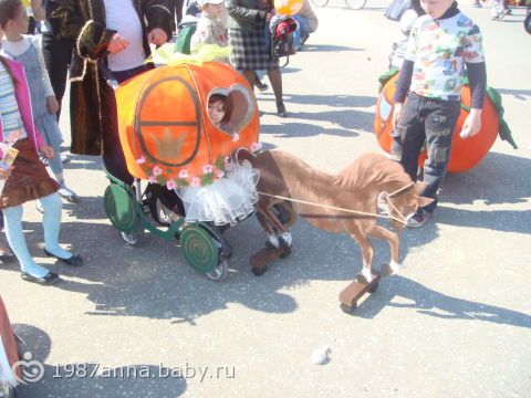Все элементы сделанны своими руками!!! лошадка и калёса нарисованны на фанере, а потом вырезанны лобзиком. Тыква сшита из паролона. Вот такая карета для золушки получилась!