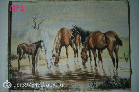 У меня есть некоторое количество гобеленовых картин размером 30*40см. Сюжеты: природа, религия, корабль и море, лошади. Всего 15 разновидностей.