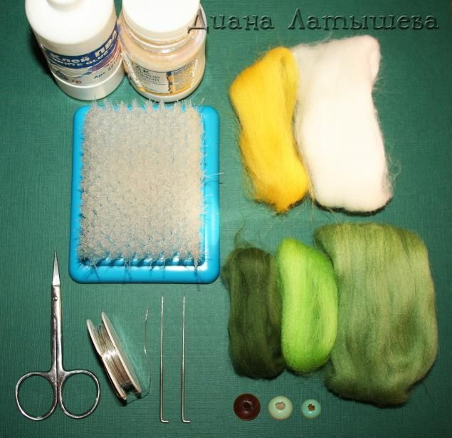 — шерсть ( гребенная лента) белая, зеленая (несколько оттенков), желтая;