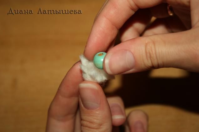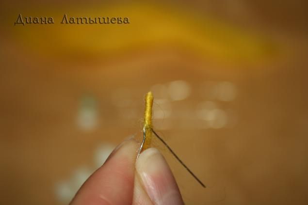 В эту «тарелочку» кладем бусину и закрываем её с помощью иглы.