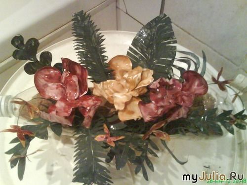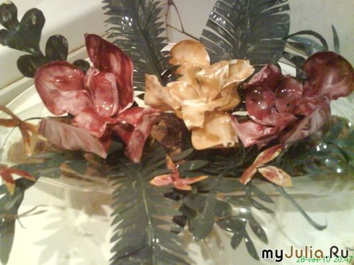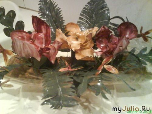 Вот и я, так «подсела» на что-то необычное из пластиковой бутылки, что опять-таки сотворила композицию, а вазой у меня стала сама бутылка.