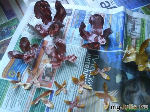 За неимением на тот момент акриловых красок под рукой, раскрашивала лаком для ногтей