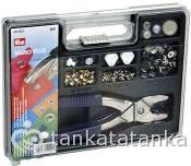 Еще есть фурнитура фирмы PRYM, ее можно устанавливать без щипцов и прессов, в наборе идет специальная штучка, в которую кнопочку вкладываешь и так де бьешь иолотком. На коробке сзади инструкция с картинками. Правда в магазинах эти наборы стоят дороговато, я на осинке эти кнопки беру, они подходят к моим щипцам.