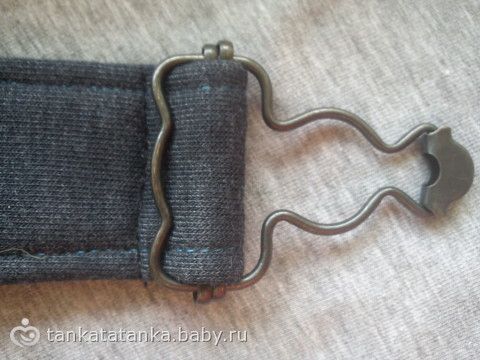 но по правилам надо лямку между двух железячек пропускать. Мне так не удобно, очень туго получается и отрегулировать проблематично. Я когда ставлю эти застежки, брюки на Владюху одеваю и регулирую, затем просто прямой строчкой закрепляю лямочки и все