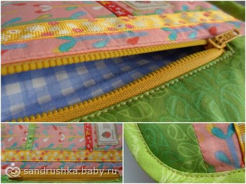 Я сделала отдельно лицевую сторону и внутреннюю. Каждую проклеила флизелином и проутюжила с тонким синтепоном. Потом нашивала декор на внешнюю, и функционал на внутреннюю стороны.