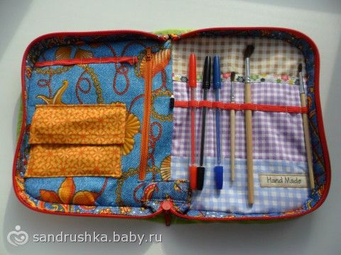 В списке школьных принадлежностей помимо всего прочего был и пенал мягкий. Именно слово «мягкий» поспособствовало тому, чтобы я сама его сшила ))) Глянула я, какие в магазинах продаются, вроде несложно, можно разобраться. Сначала честно попробовала найти в интернете, но именно таких не нашла, только скручивающиеся, или складывающиеся, или по типу косметички. Но у меня была цель сделать вот такой. Поэтому пришлось самой соображать.