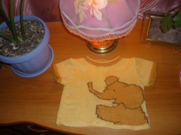 большая.будем носить сами.Да и тем более косяков полно,100лет уже рисунки не вывязывала, надо подучиться и потом связать и им что-нибудь.Ну вот собственно и он-СЛОНЕНОК!